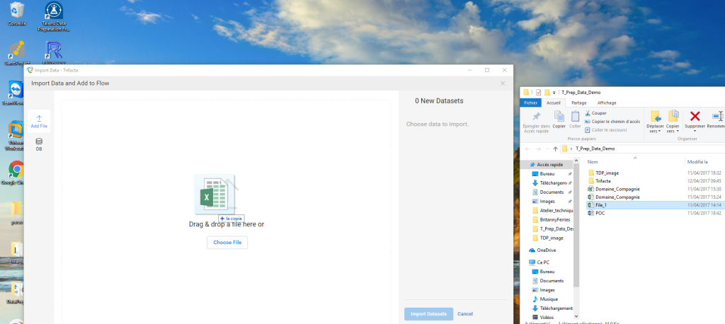 Ajouter les DATASETS (sources), soit par drag & drop (glisser-déposer), ou en cliquant sur Choose File :
