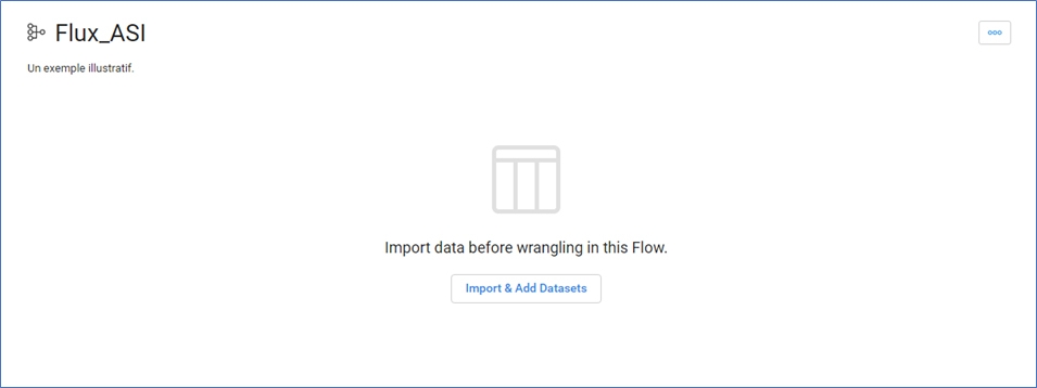 Dans la barre horizontale haute, nous remarquons les trois Eléments essentiels, FLOWS (Flux), DATASETS (Sources), RESULTS (Résultats) ainsi que l’interface de chaque élément.