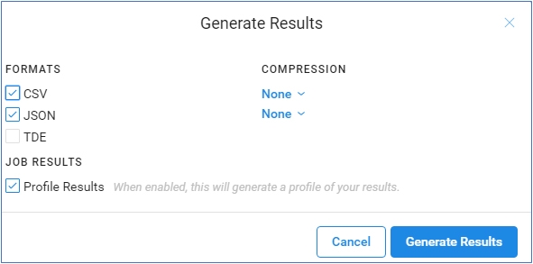 En haut à droite, Trifacta permet de générer le résultat des transformations.