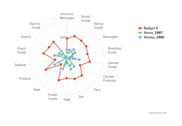 - Une deuxième extension s’appuie sur la bibliothèque Highcharts pour construire un radar, avec la possibilité de mettre plusieurs dimensions et de choisir la couleur de la dimension ainsi que la taille du diagramme.