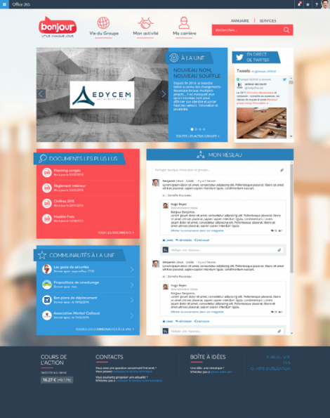 Après une phase d’analyse des besoins et des solutions du marché, c’est la solution Office 365 (SharePoint Online) qui a été retenue.